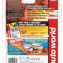 The X-Traction chassis is a modified version of the classic pancake design used in Auto World’s ThunderJet Chassis. Increased weight and larger rear wheels provide better performance and superior handling. Underneath, and Ultra-G neodymium traction magnet adds even more track-gripping handling through the tightest curves for maximum racing excitement!