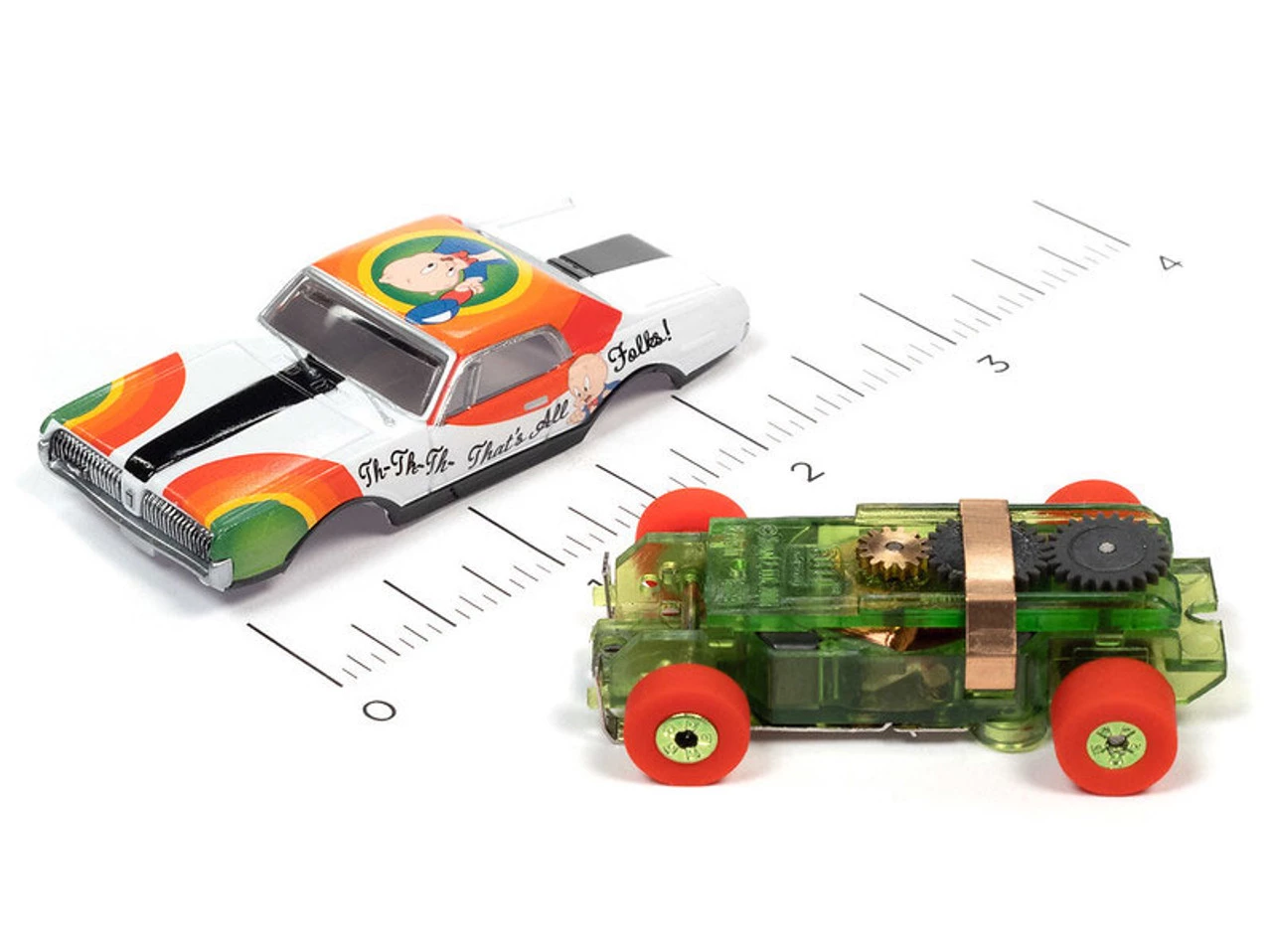 Auto World’s Looney Tunes slot cars are decked out with iconic Looney Tunes character art. The ThunderJet Ultra G chassis provides all the power these tiny toons need! Daffy Duck, Porky Pig, Speedy Gonzales and Tasmanian Devil are ready for a zaney race around the track!