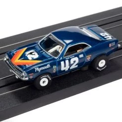 This is the Auto World 1970 Plymouth Barracuda Swede Savage #42 Thunderjet HO Slot Car.