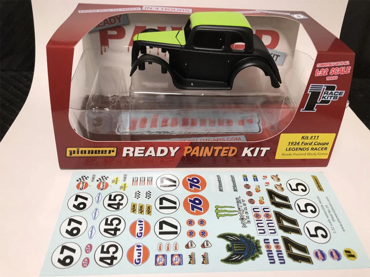 This is the Pioneer 1934 Ford Coupe Legends Racer ‘Ready Painted’ Black/Green Kit 1/32 Slot Car. This is a Limited Edition run. Only a limited number of this specific kit will be manufactured.