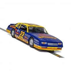 This is the Scalextric Chevrolet 1986 Monte Carlo Optimum No. 22 1/32 Analog Slot Car. The car features high detail, a super-resistant body, and is Digital Plug Ready.