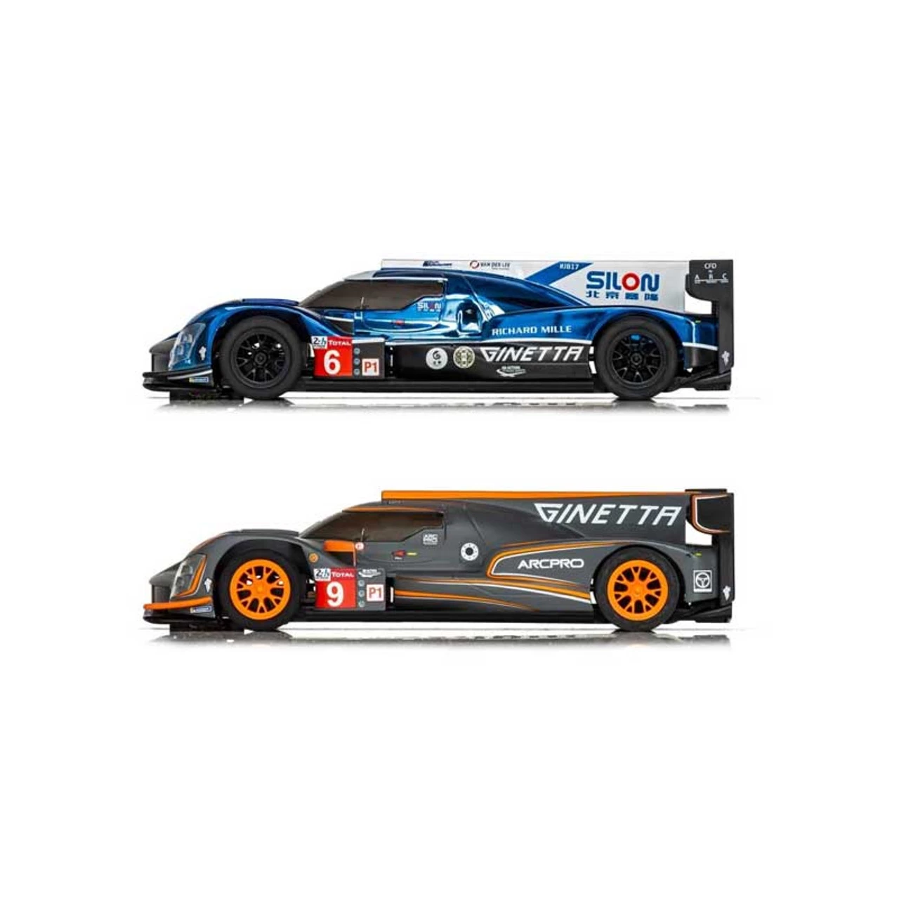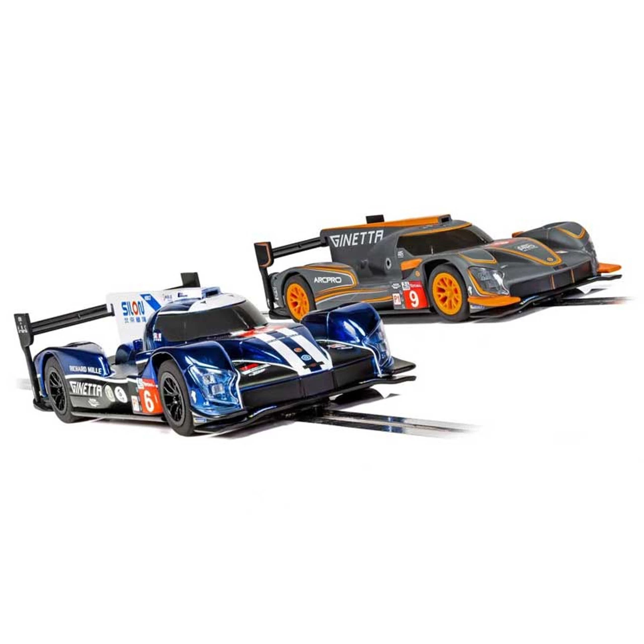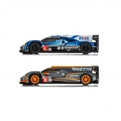 This is theScalextric ARC PRO 24h Le Mans Ginetta LMP1 Blue and Ginetta LMP1 White/Orange 1/32 Slot Car Set featuring two beautiful Gineeta LMP cars. Check out all the features below that add to the thrill and realism of racing with this set.