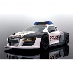 This is the Scalextric Audi R8 HH Police Car Black & White 1/32 Analog Slot Car. While not your average police car, the Audi R8 is surely something not many criminals would be able to escape from! This Scalextric version comes complete with both a siren and flashing police lights on the roof.