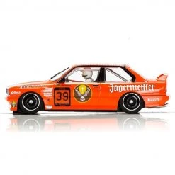 This is the Scalextric BMJ E30 M3 ‘Jagermeister’ 1988 Mario Ketter DTM 1/32 Analog Slot Car. The BMW E30 M3 raced across many nations and series, featuring an array of iconic color schemes. There werenÂ’t many better than this fantastic orange livery, from the famous drinks manufacturer. Driven by Mario Ketterer for the 1988 DTM season, sadly the results did not match the success of the livery, however, the car did leave a lasting impression on anybody who saw it race.