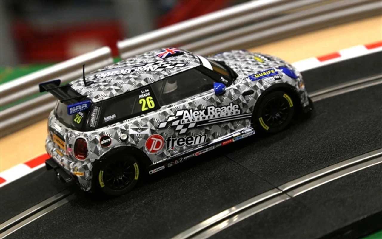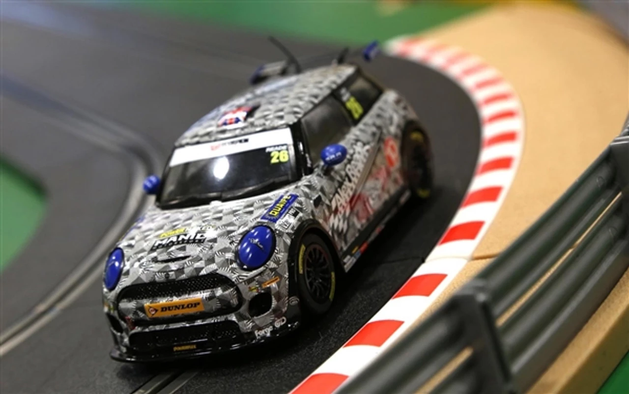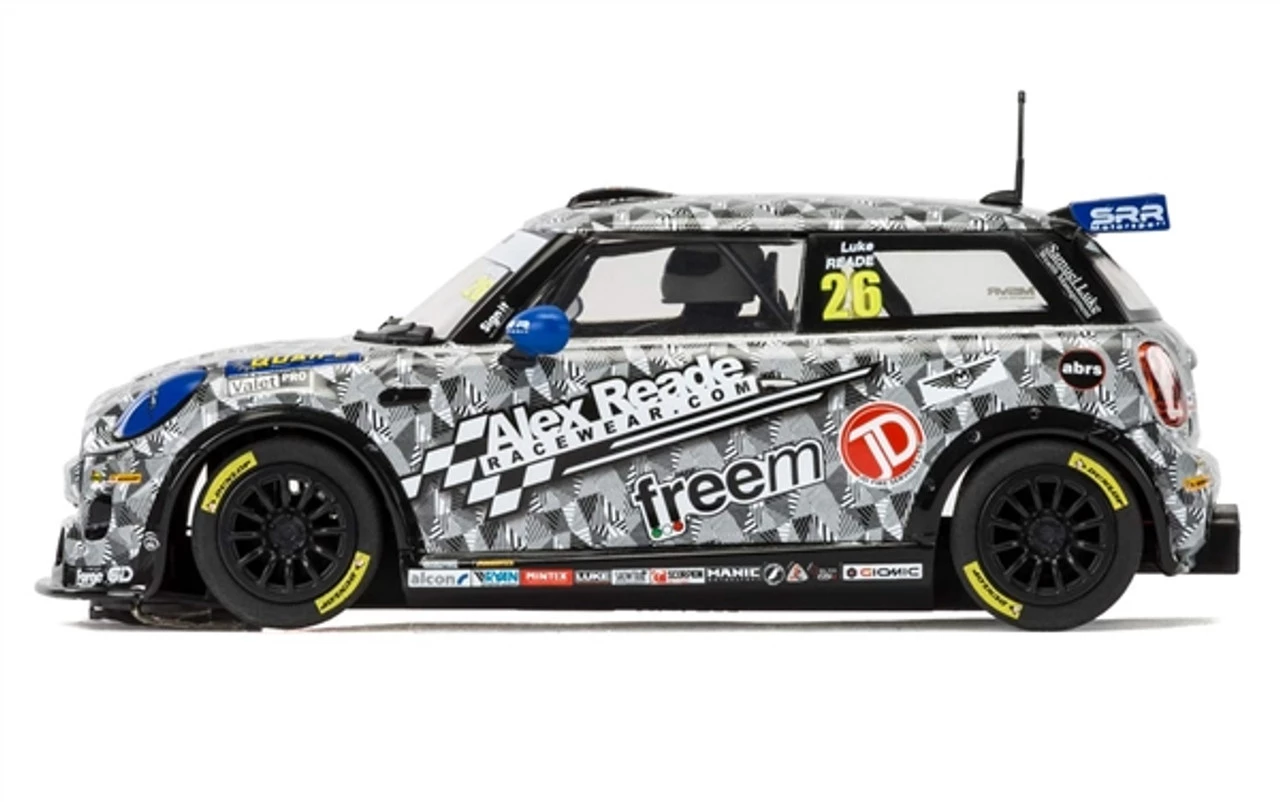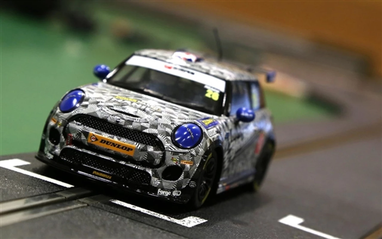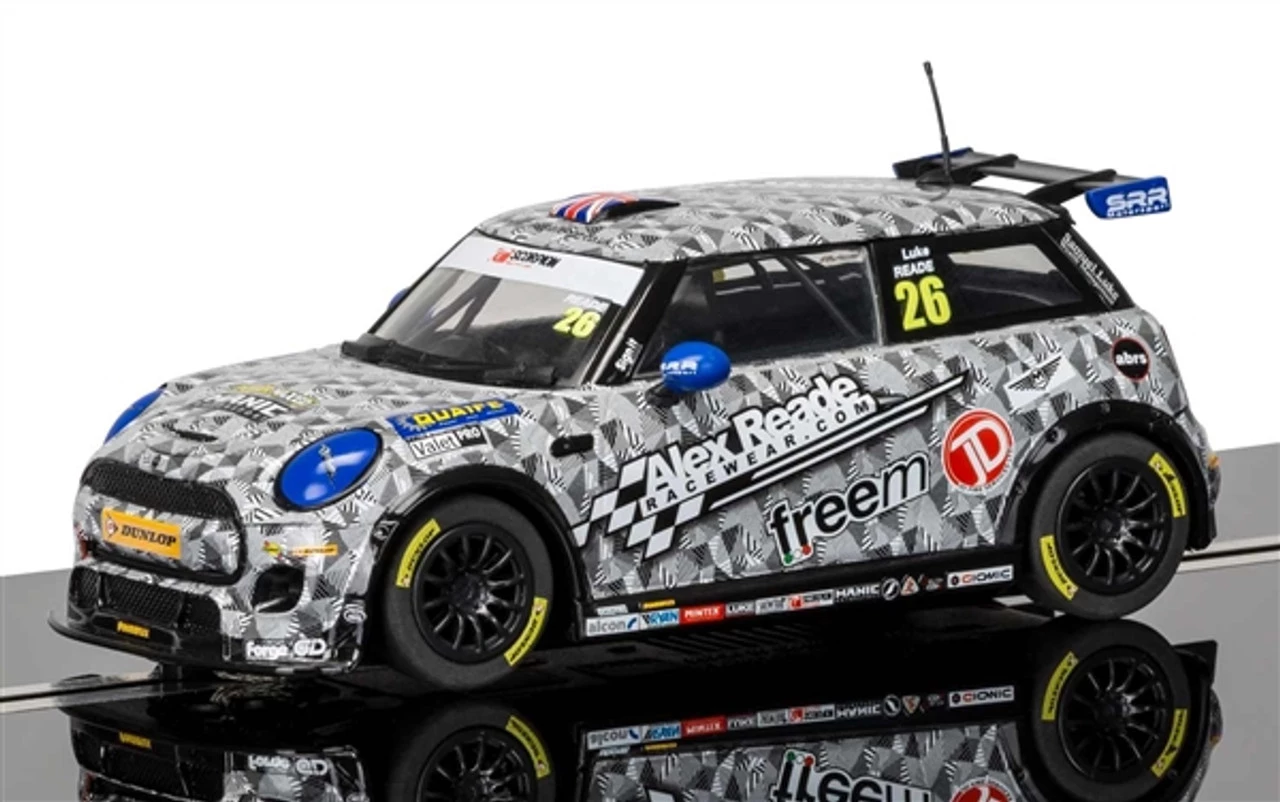 This is the Scalextric BMW Mini Cooper F56 Mini Challenge 2016 Luke Reade 1/32 Analog Slot Car.