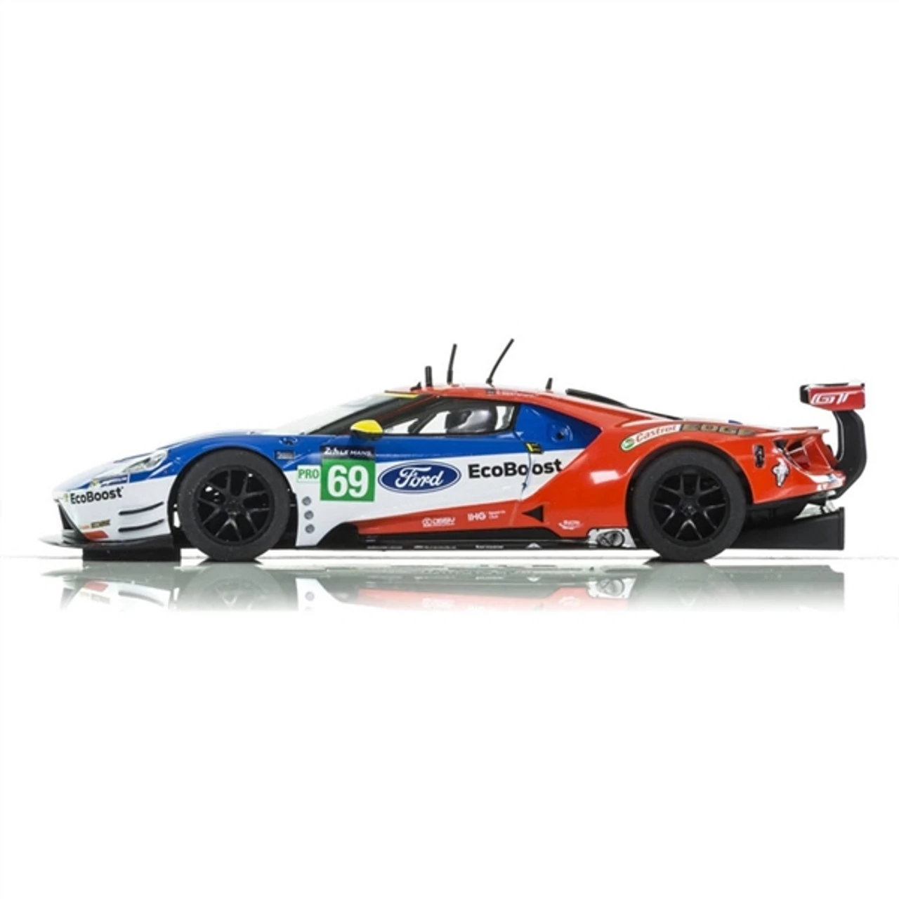 This is the Scalextric Ford GTE n.69 Le Mans 2017 1/32 Slot Car. The No. 69 Ford raced with Australians Ryan Briscoe, Scott Dixon and Brit Richard Westbrook at the wheel. The car finished 7th in class at Le Mans 2017.
