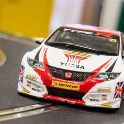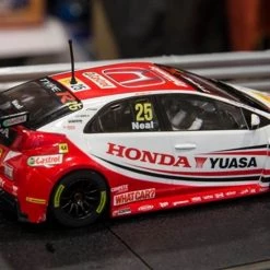 This is the Scalextric Honda Civic Type R BTCC Matt Neal Donington Park 2015 1/32 Analog Slot Car. This model is Digital Plug Ready, and also Pro Chassis Ready.
