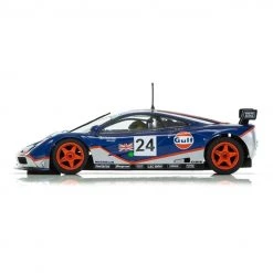 This is the Scalextric McLaren F1 GTR ‘Gulf’ Blue/Orange 1995 LeMans 1/32 Analog Slot Car. Having returned to endurance racing at Le Mans 1994, Gulf Executive Martin Allerton made the popular decision to take the blue and orange of Gulf Racing into GT racing for the 1995 season.